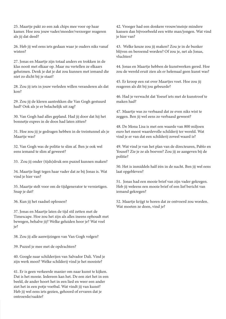 Sinds Jonas’ opa een tijdmachine bouwde, leeft hij één dag verder in de toekomst. Nu stuurt hij Jonas en Maartje de boodschap dat er een museumroof gaat plaatsvinden. Aan de hand van raadsels, puzzels en een escaperoom moeten zij de wereldberoemde kunstwerken zien terug te krijgen. Gaat het hun lukken? En wie is die mysterieuze Van Gogh die achter de kunstroof zit?