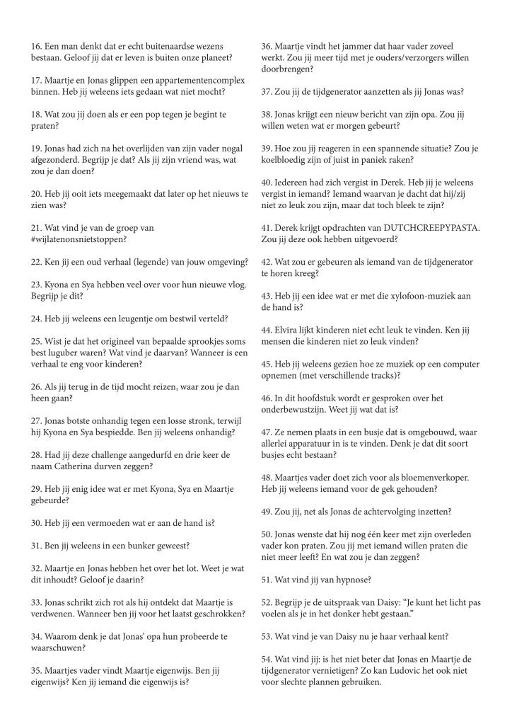 Door de tijdmachine die hij heeft gebouwd, weet Jonas’ opa wat er morgen gaat gebeuren. Jonas en Maartje krijgen de schrik van hun leven als hij hun vertelt dat er een aantal beroemde vloggers ontvoerd zullen worden. Nog erger: Maartje is een van hen. Ze proberen de ontvoeringen te voorkomen, maar DUTCHCREEPYPASTA, degene die achter alles zit, is hen steeds een stap voor. Langzaam sluit het net zich rondom Maartje. Weten ze het te redden?